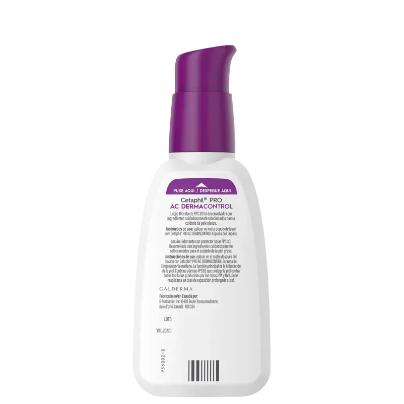 A Loção Hidratante Cetaphil Pro AC Control FPS 30 possui fácil aplicação e rápida absorção. Fórmula 3 em 1 clinicamente comprovada para ajudar a controlar a oleosidade e o brilho, hidratar e fornecer proteção UVA / UVB.
