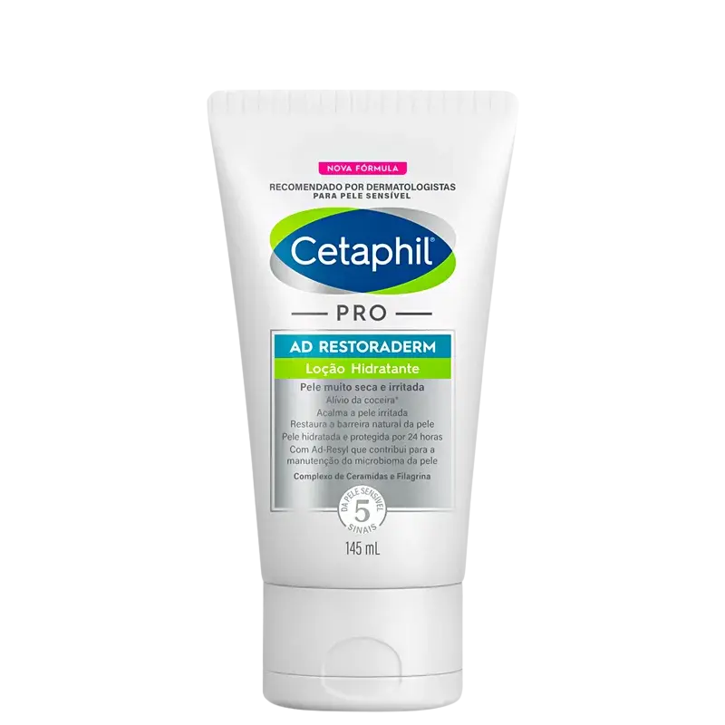 Loção hidratante hipoalergênica e corporal para pele muito seca, sensível ou atópica. Além de hidratar, Cetaphil Pro AD Restoraderm acalma e alivia o prurido da pele atópica resturando a barreira cutânea. Também ajuda a restabelecer o equilíbrio da pele e reforça seu sistema de defesa.