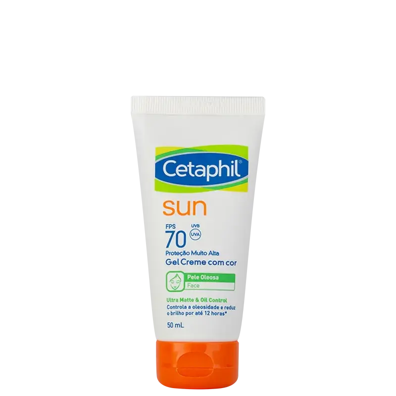 Protetor solar com cor para peles oleosas. Cetaphil Sun FPS 70 com Cor protege intensamente, uniformiza o tom, controla a oleosidade e reduz o brilho por até 12h .